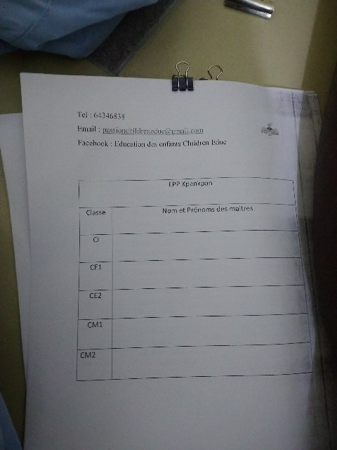 最後に、何てことなさそうな2枚の写真をご覧ください。クリップが付いています。こちらのクリップは、以前私が務めておりました学校の校長先生がくださったものです。この書類は、プロジェクト当日に使うものなのですが、量も種類も多く、分けて閉じたいのだが何かいいものはないかとクラリスに言われました。ホッチキスなど流通していないですし、自分の筆箱にホッチキスは入っていたのですが、残念ながら針を切らしていて、最初は見た目が不恰好だけど仕方ないということで、洗濯ばさみを使っていました。しかし、不意にこのクリップをいただいたことを思い出しました。クラリスは初めてこれを見たようで、使い方が分からず、クリップだとも思わなかったようです。