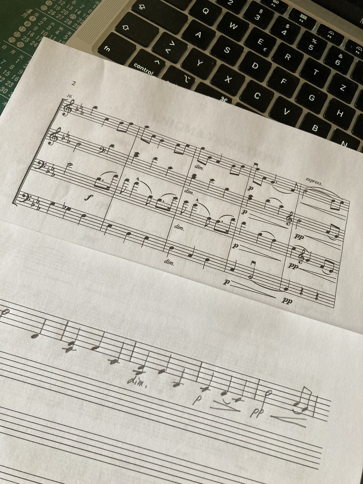 本当なら、この時代、奏者と言えども、もうコンピューターで楽譜が描けるようになっていなければならないのですが、日頃の忙しさや、普段のオーケストラのお仕事ではライブラリアンの方がすべて楽譜関係の諸々を担ってくれることに甘えている、などの理由から、私の楽譜制作スキルはまだ20世紀に留まったままなのです。汗)