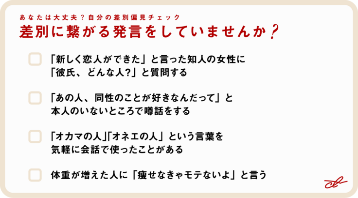職場などで起きている差別発言に気づき、社員を傷つけない。