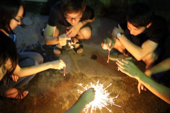 とーちゃんかーちゃんにおねだりをして夜は花火をし、