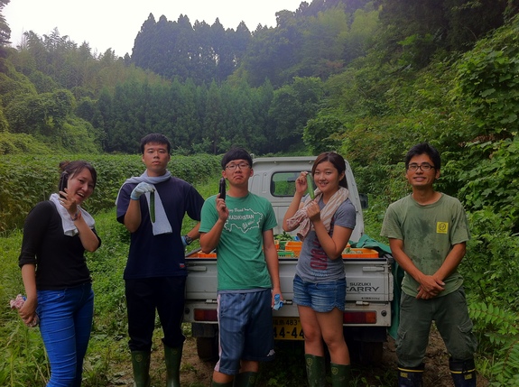 (農家さんにお邪魔した、ディレクター下向のグループ。野菜の繊細さに感動したと、5人が口を揃えて言っていました*)