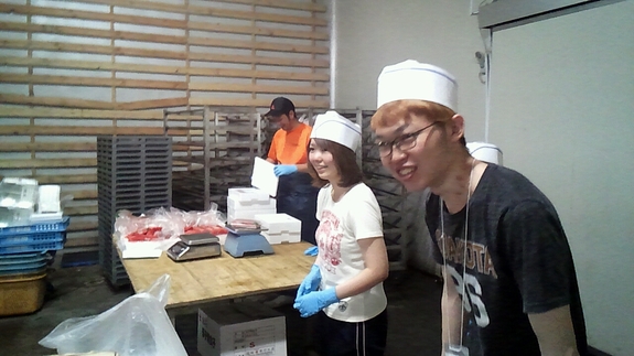 (水産加工を手伝った、CLC福島ディレクター吉田のグループ。チーム"めんたいこ"という名前の、圧倒的にチームワークの良い、仲良しなグループでした。)