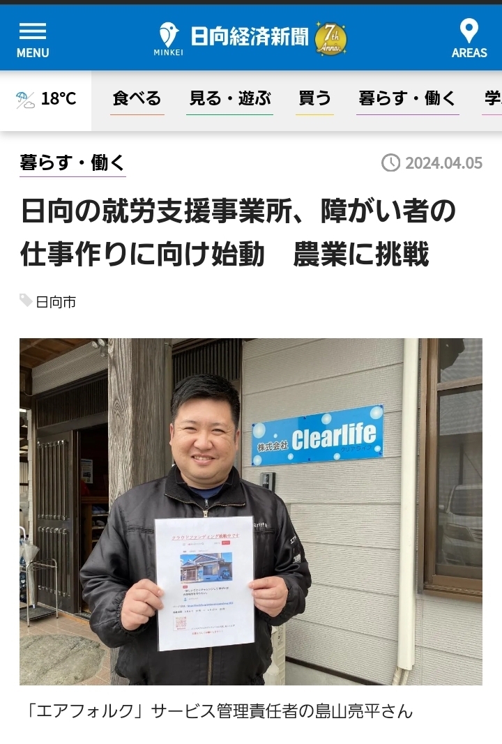 先日取材して頂いた記事が本日より日向経済新聞さんに配信されています。