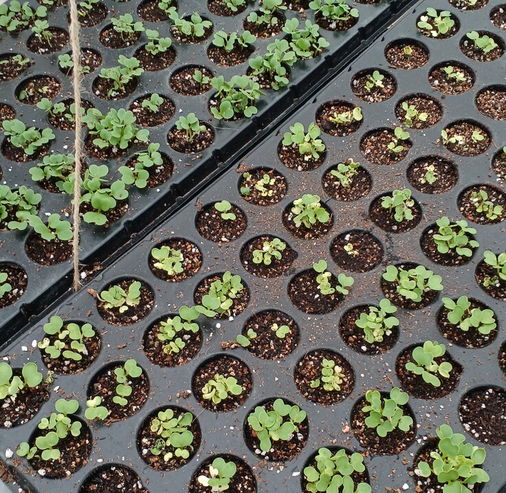 季節は冬ですが、ハウス内は25℃以上になる日も多く、苗がどんどん成長しています。