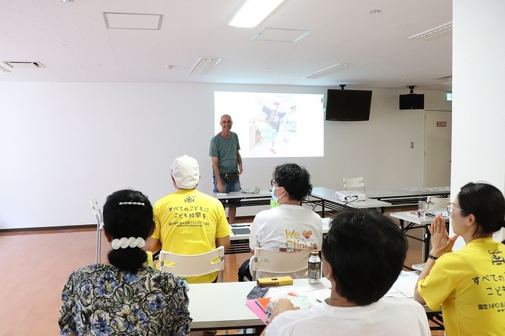 日本クリニクラウン協会の活動を事務局長の熊谷が紹介し、