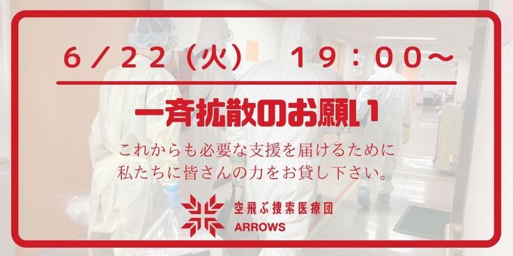 6/22(火)19:00に空飛ぶ捜索医療団"ARRWOS"の公式Twitterにて、