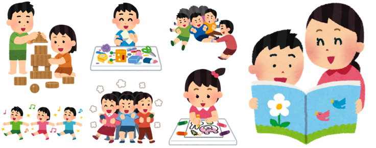 日常生活や、保育園などでのお友達との関わり合い等の社会生活において、それぞれの障害の特性や発達の状態に応じて、自分でできることを増やすこと(自立支援)や、そのための機能訓練を行ったり、遊びや学びの場を提供する形での支援を目的としています。