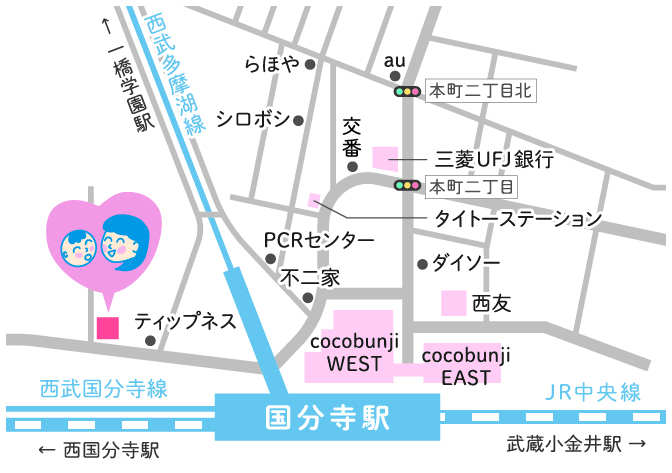クメンタクリニックは、国分寺駅から徒歩2分です。