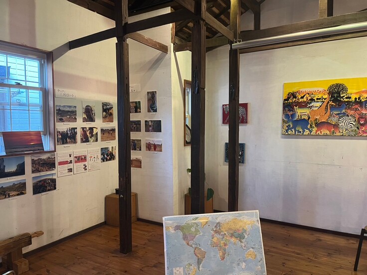 あっちゃんは、JICA協力隊で数年前にアフリカのケニアに滞在し、非行少年の教育活動を行っていました。その滞在先で撮った貴重な写真や現地のティンガティンガと呼ばれるアート作品を展示してくれました。