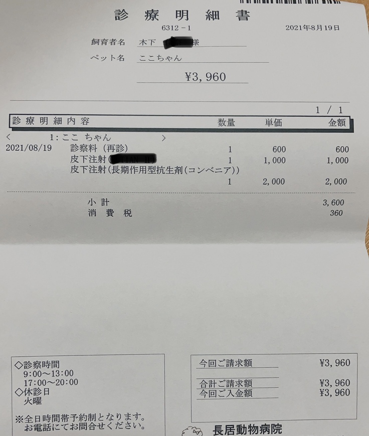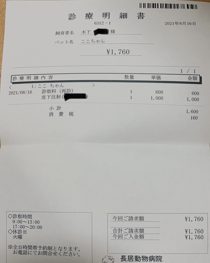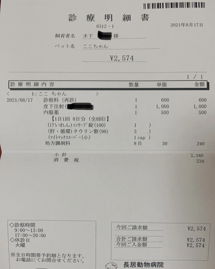 +接種費用等+カプセル投薬(10日分)=207.108円