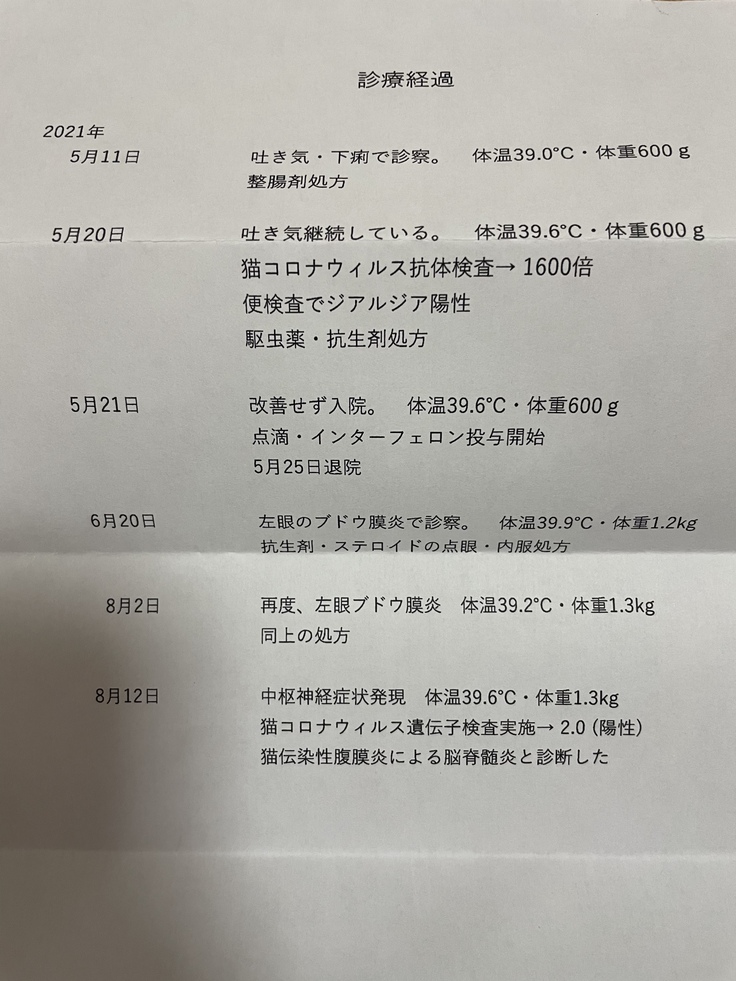 FIP末期と診断されるまでにも色々な辛い治療と戦ってきました。