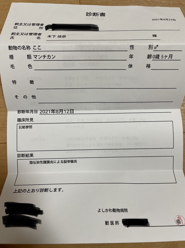 FIPドライタイプ末期と診断されたここの治療費に使用させていただきます。
