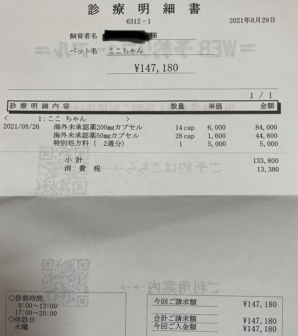 体重の増加が早く250mg→300mgに早速お薬の量が増えました。
