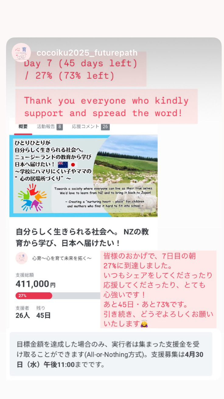 過去にご自身のお仕事の一環でNZの学校に行ったというライフコーチ仲間が連絡をくださっていろんなお話やアイデアを共有してくださったり
