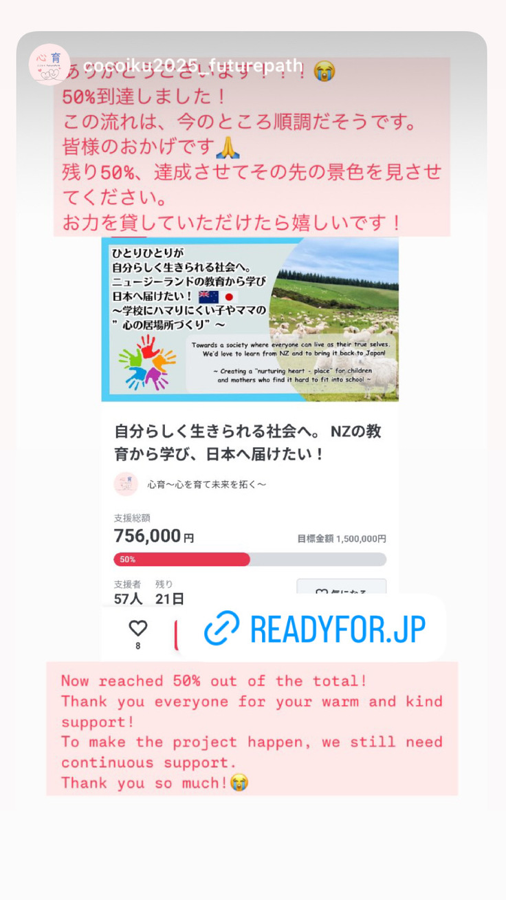 We are halfway to our goal, and we are so grateful for the warm support of all those who have been involved so far.