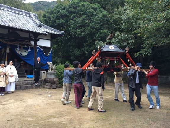昨年は、御輿を僕たち学生が担ぎ、20年前と同じ島の地区を周る祭りを復活させました!