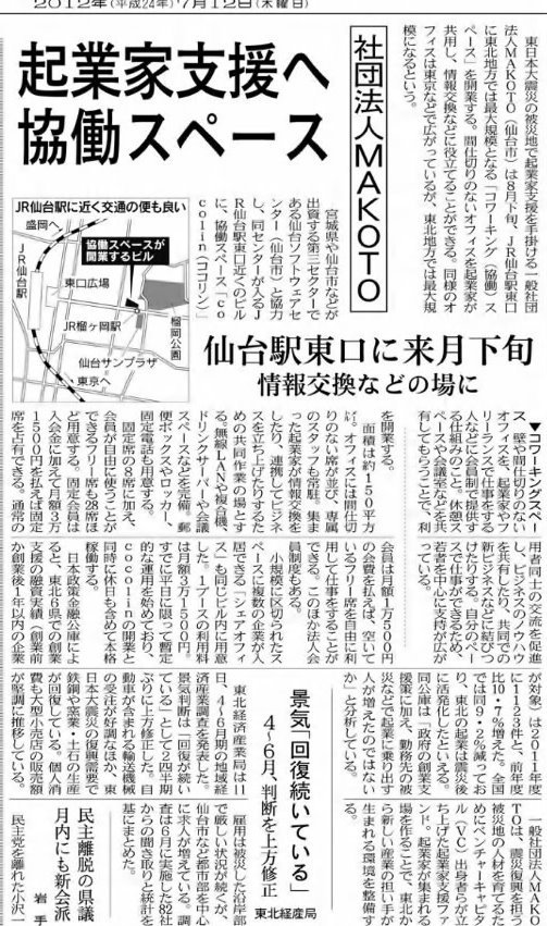 ◉その2> 日本経済新聞 東北版(7月12日朝刊)