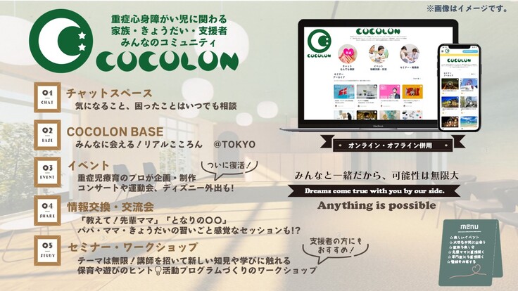 今回は私たちの新しい事業である「COCOLON」の居場所づくりであり、ご家族やごきょうだい、支援者などみなさんが集まるための場所を作りたいと考え、クラウドファンディングでご支援をいただきたいと思い、本日より開始しました。