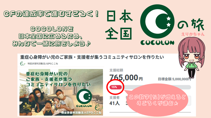 この達成率が増えるごとに「えりかちゃん」が日本全国を進んでいきます♪