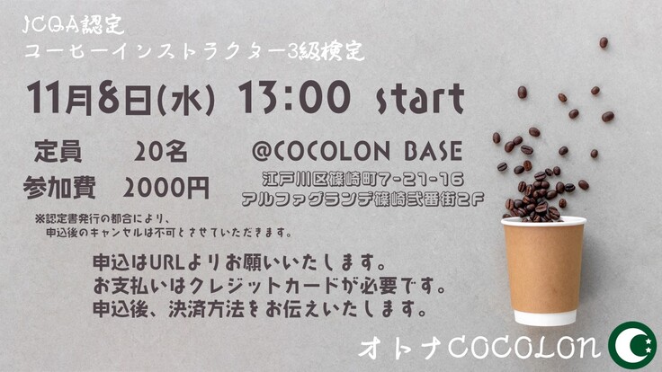 COCOLON BASEにコーヒーインストラクター3級検定がやってくる!