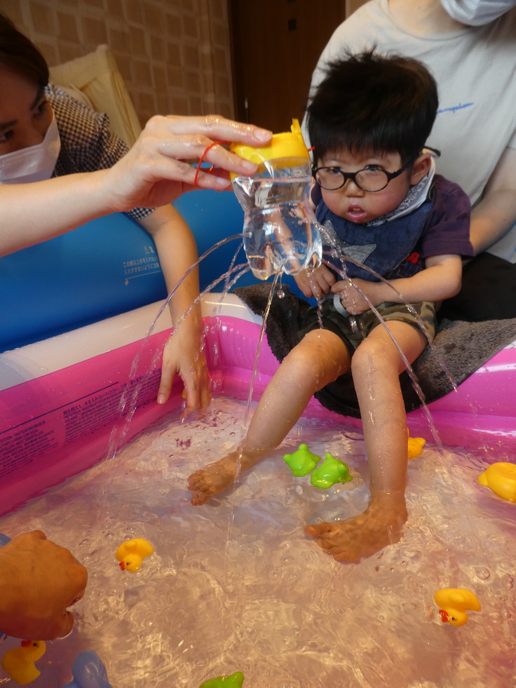 雨の日や暑すぎる日はお部屋の中で水遊びをすることもあります♪