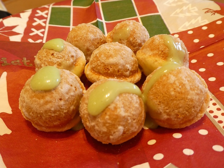 鈴カステラと抹茶クリームでクリスマスツリーケーキの