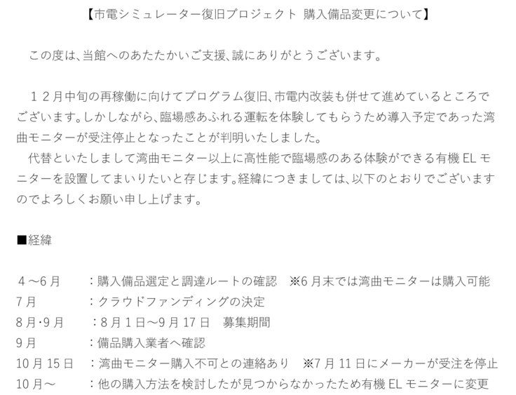 その中で臨場感ある運転体験の1つとしてご提案させて頂いていた湾曲モニターが生産停止及び導入した際の保証等がないことから変更をさせて頂きます。代替えは湾曲モニターよりもさらに高性能である「有機ELモニター」を設置させて頂きたいと存じます。
