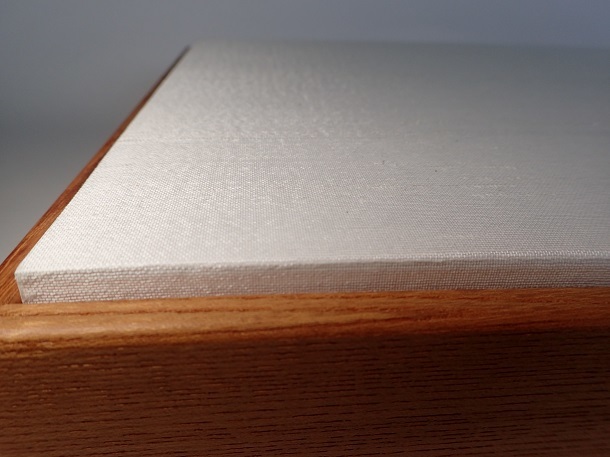 ⑥しけ絹を囲み貼りし、⑦裏にもしけ絹を貼ることで反りを抑え、継ぎ目を見せない美しい仕上りになります。