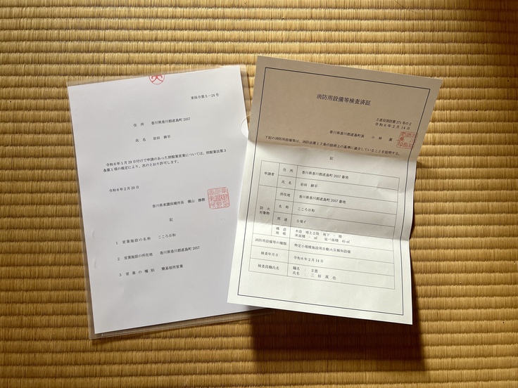 消防の書類は2日ほどで届き(さすが直島は早い!)あとは、保健所からの書類を待つばかり。。