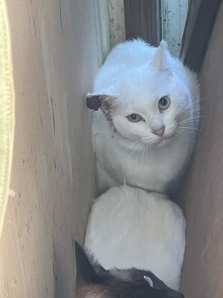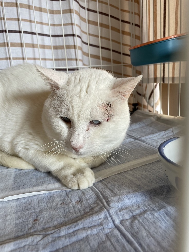 じいの目の上にある「謎のかさぶた」は保護した時からあり、何件も病院をまわりいろいろな検査をしました。