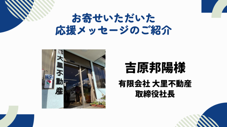 そんな大里不動産の吉原さまよりいただいた、あたたかい応援メッセージをご紹介いたします。