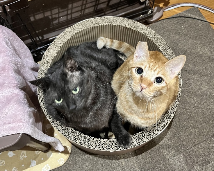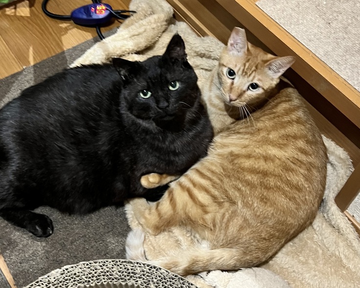 相性が良く、一緒に寝たり、たまににゃんプロをしたりして過ごしています。