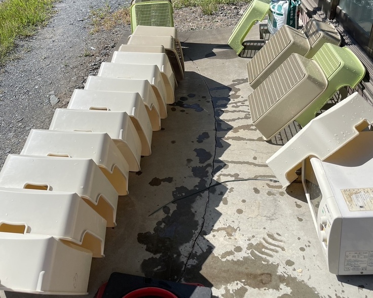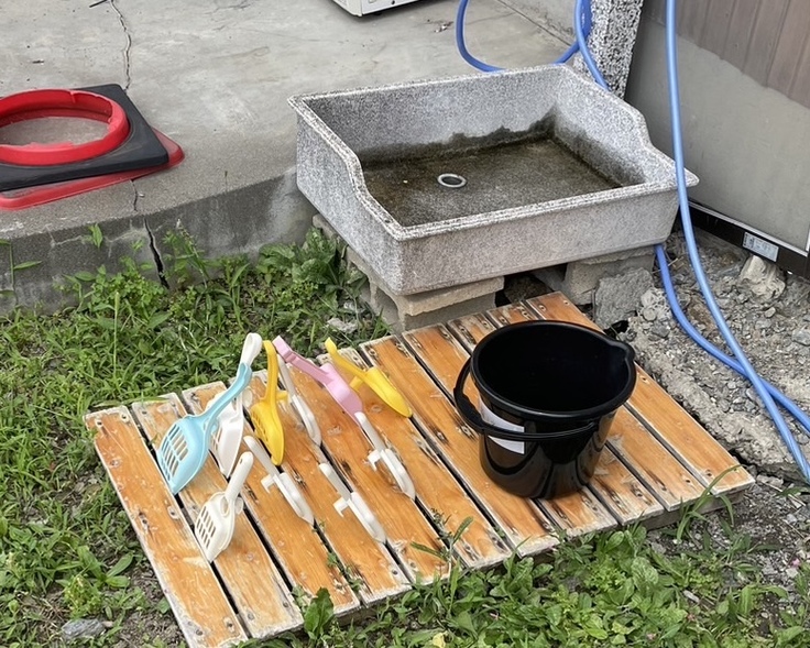 トイレの丸洗い、砂の交換、トイレシートの交換、スコップの洗浄などが付随してきます。