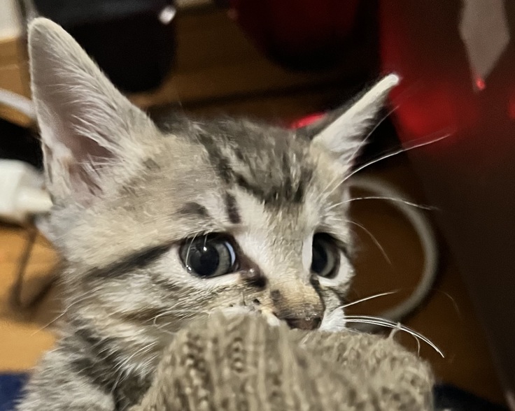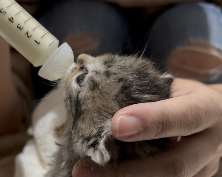まだワクチンが打てず免疫力が弱いこと、あまり小さい子だとウィルス検査の結果が不安定なことから、他の猫たちとの接触を避けているので
