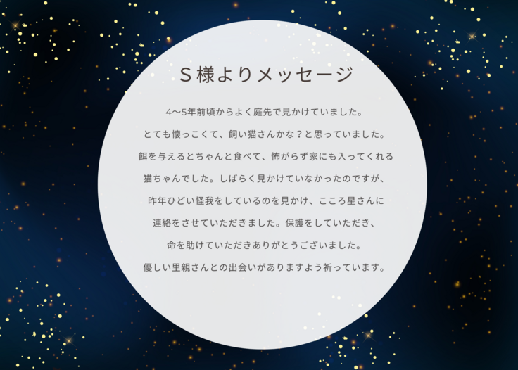 治療費をご負担してくださったお二人よりメッセージを頂戴いたしました。