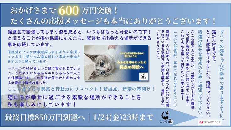 STEP2では、猫たちが安全に快適に過ごすための費用を集めさせてください。