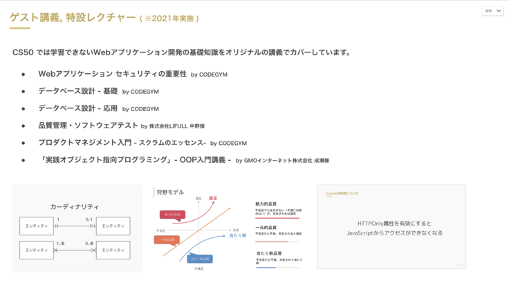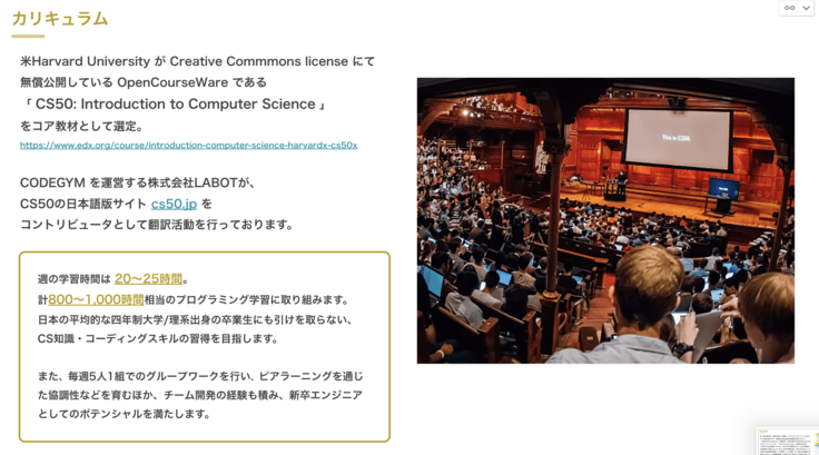 カリキュラムは、ハーバード大学とMITが提供しているオンライン履修サービス「edX」を通じて、Harvard's CS50 から「CS50: Introductions Computer Science」を採用。