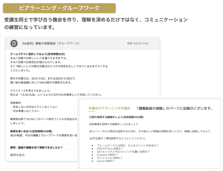 学生がお互いを評価し合ったり、グループワークでの学びが重要になります。