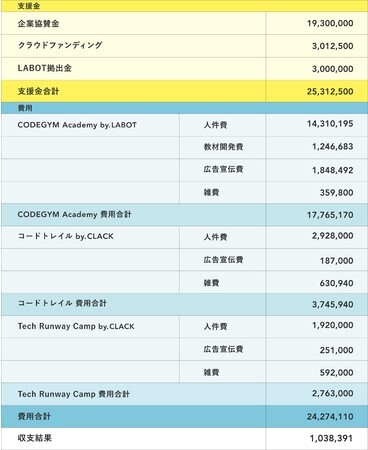 コロナの学生にプログラミングを教える非営利プロジェクト「CODEGYM Academy」における 25,312,500円 の収支報告、活動報告(中間レポート) を公開します。