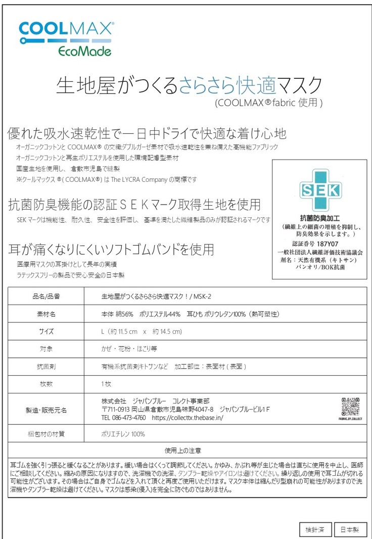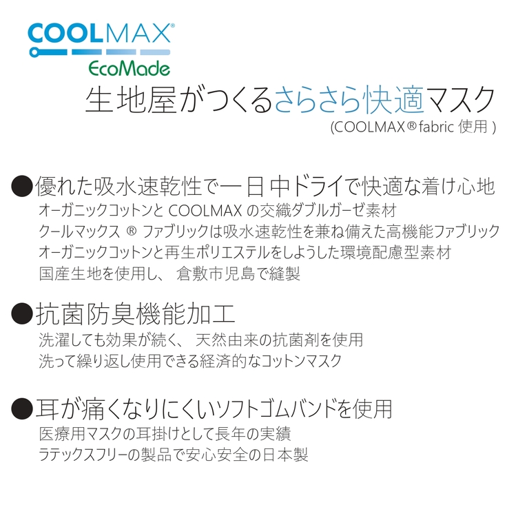 オーガニックコットンxクールマックス®エコメイドのダブルガーゼを使ったマスク