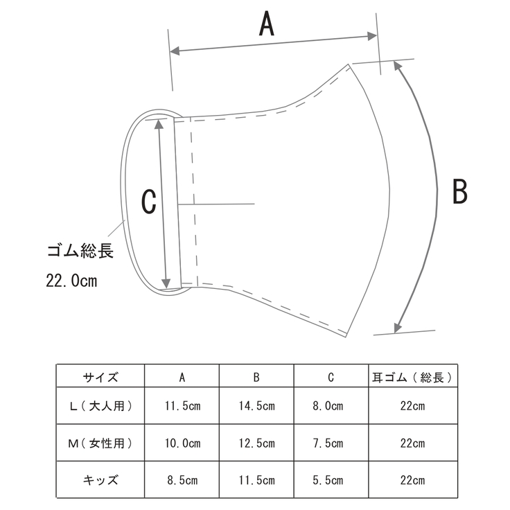 M、L、キッズのサイズ詳細は下記のとおりです。