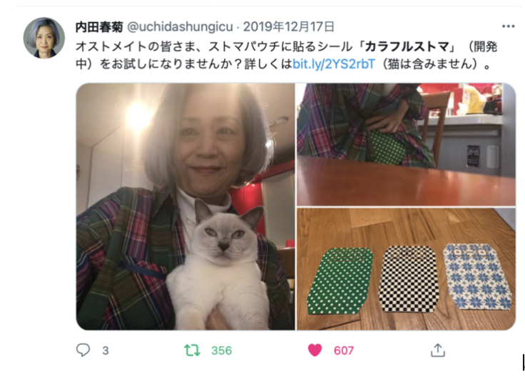 パウチという、オストメイト個人のプライベート性が非常に高いものを、いかにして社会において、その柄について会話できるような、ごくありふれたものに変えていけるか、というのが私の使命であると常々考えておりました。