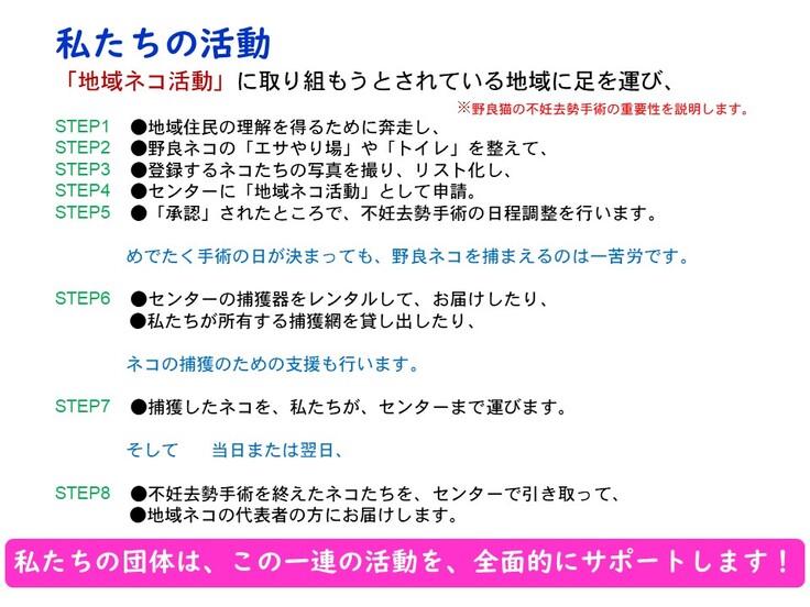 ◆私たち「一般社団法人岡山県地域猫活動の会」がサポートする内容は・・・