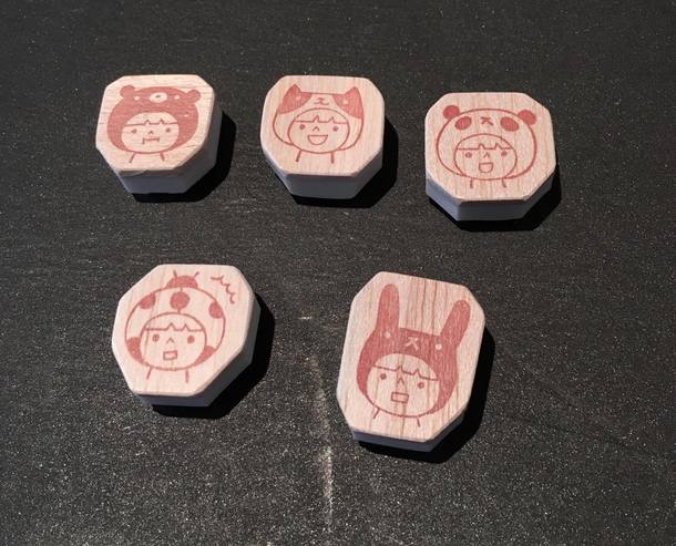 現在、消しゴム作家のよーよーさんに5種類のはんこを彫っていただいています。
