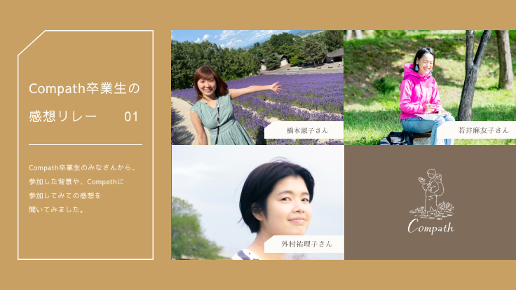 同じコースに参加していても、卒業生ひとりひとりのストーリーは千差万別。Compathが、様々な人生が交わる交差点になっていると実感し、ほくほく嬉しく、そして寄せてくれる想いにピンと背筋が伸びるような気持ちです。