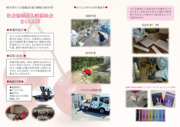 福祉施設からの依頼を受けて利用者の方が作成し、実際に配布されているリーフレットがこちらです。