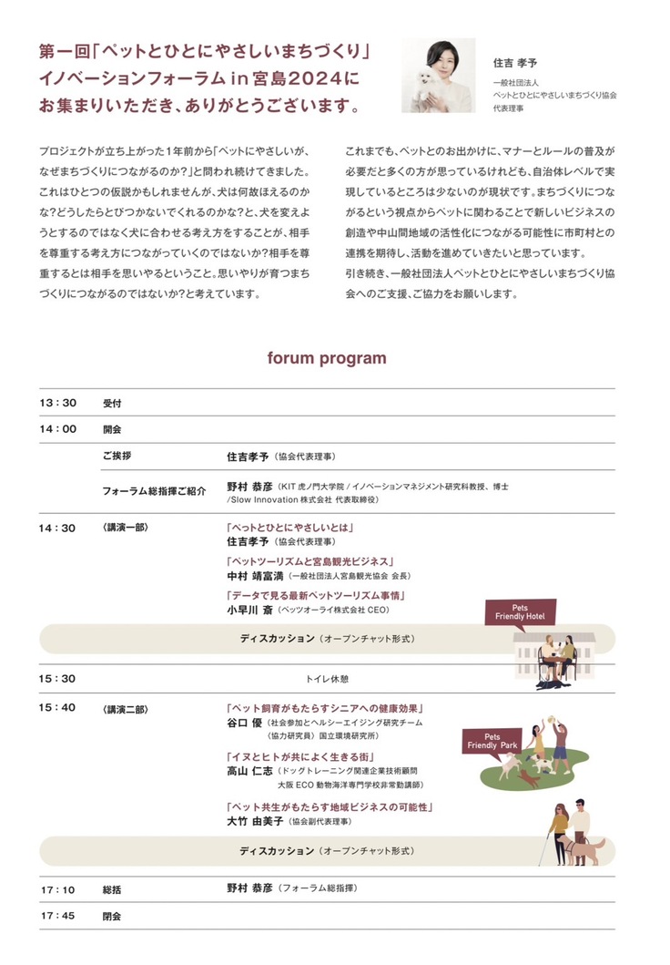 皆さまのご支援のおかげで、ペットとひとにやさしいまちづくりイノベーションフォーラムin宮島2024 開催することができました!