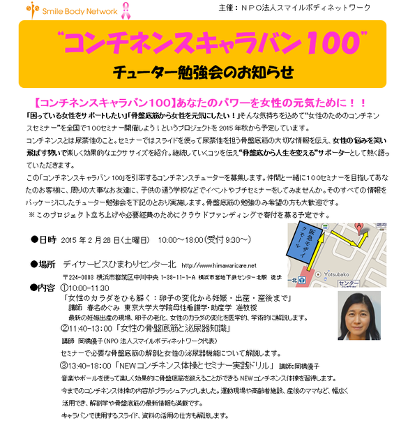 女性を対象に指導しているインストラクターの方はもちろん、チューター希望者以外の方もウエルカムです。詳細は http://www.smile-body.net/ をご覧ください!