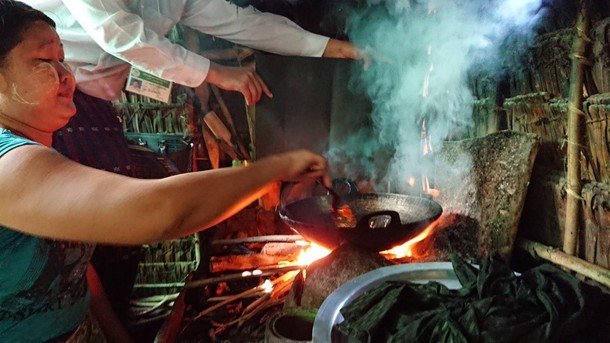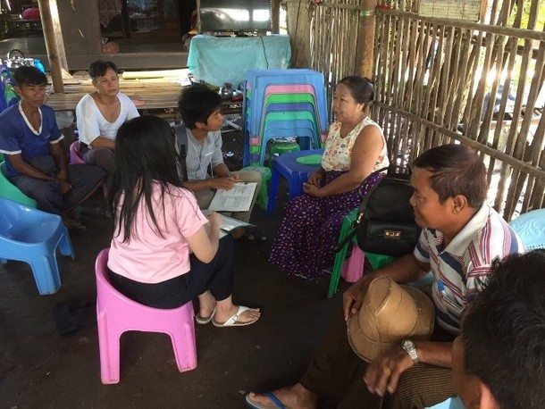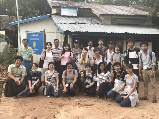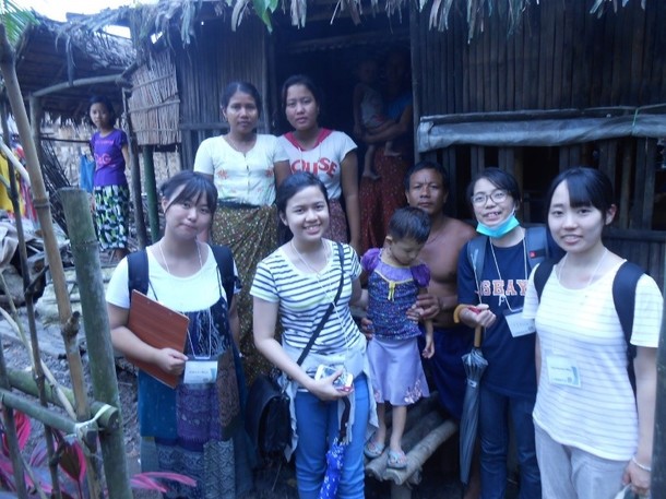 ヤンゴン経済大学の学生とミャンマーのトワンテで コンロによる煙の被害を調査。