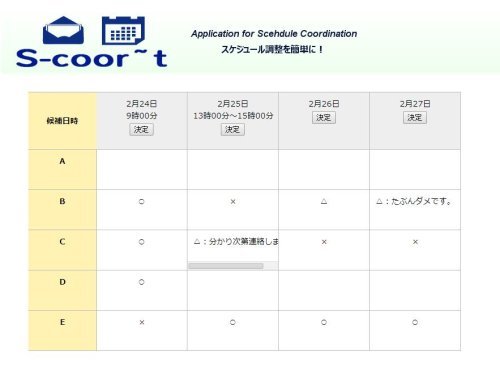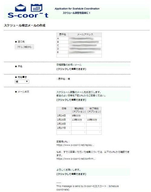 コーディネートシステムは、送られてくるメールに記載されているURLをクリックするだけで終わって、次のような画面が出てきます。